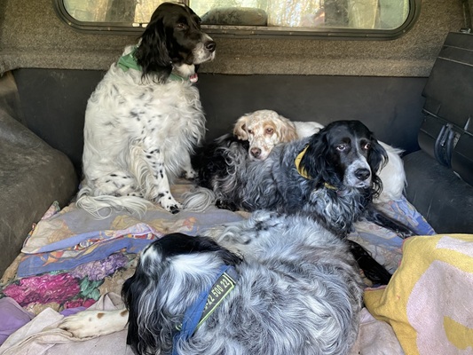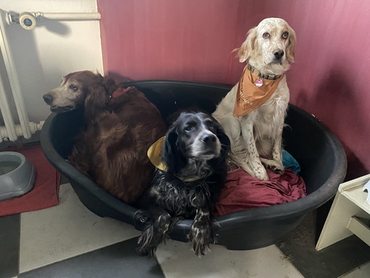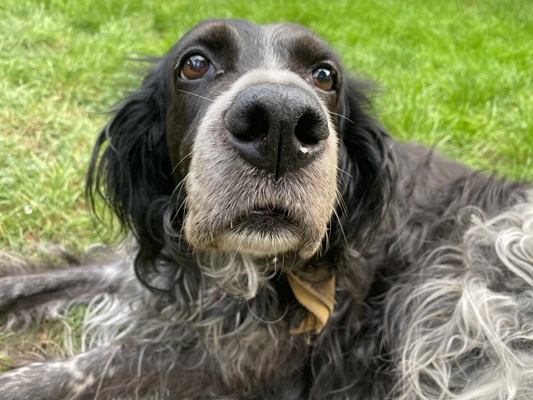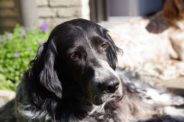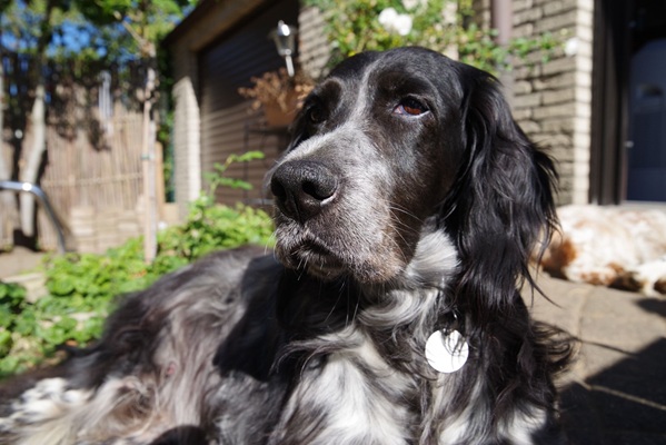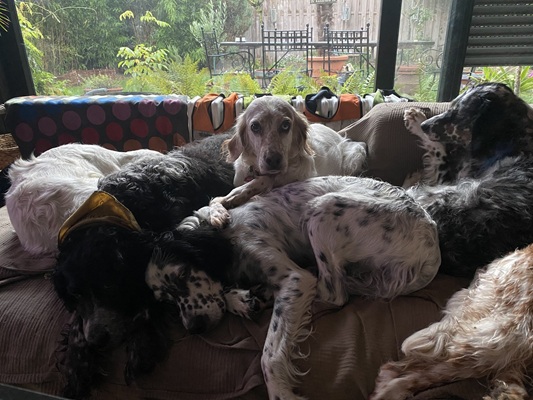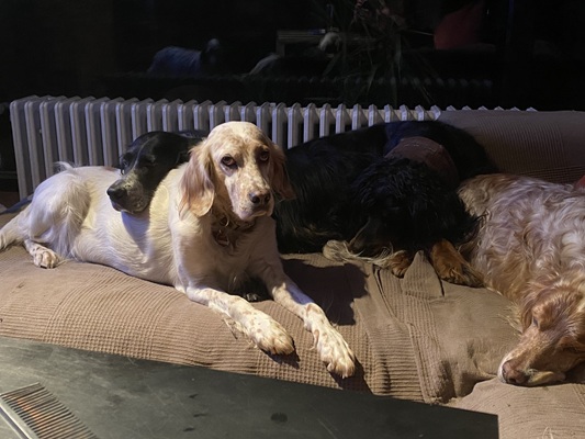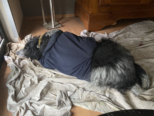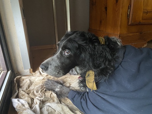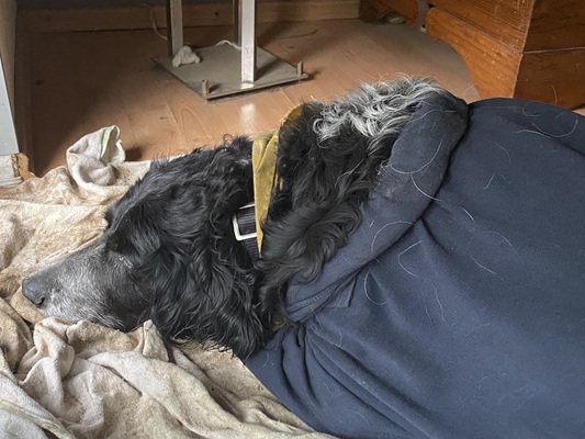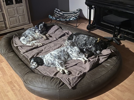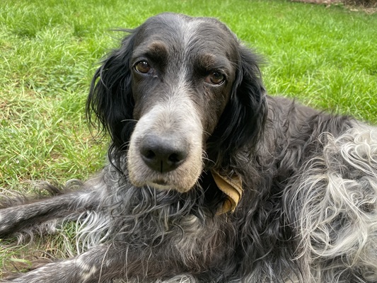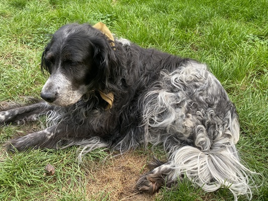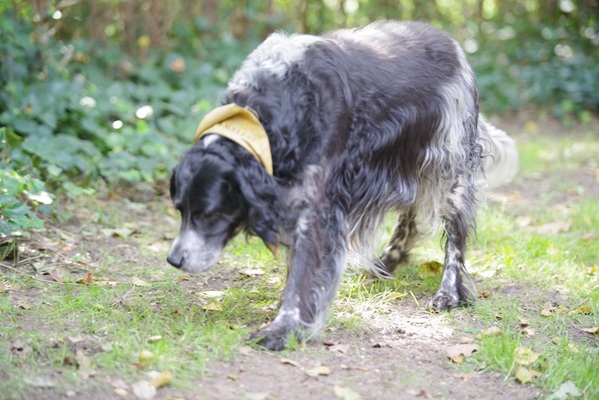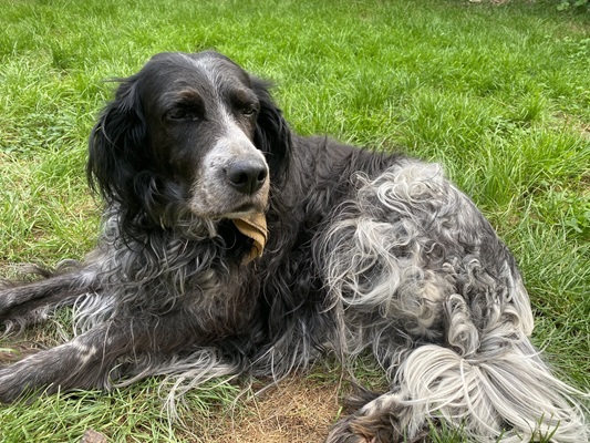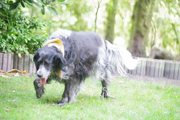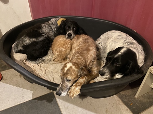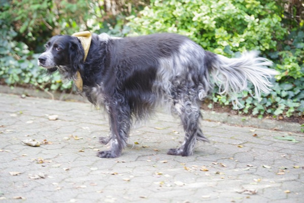 Sie hat Spondilose, bekam eine Tramadol am Tag als sie zu mir kam und war somit hoffentlich "schmerzfrei". Die kalte Jahreszeit und auch zu viel Bewegung machen ihr sichtlich zu schaffen, sie läuft dann auf den Ellenbogen und kann nicht mal eine Stufe hoch gehen oder sich in einen der vielen Körbchen legen - zu groß sind dann die Schmerzen! Dabei hat sie riesig Spaß auch mal Gas zugeben und Setter typisch den Vögeln nach zu jagen.