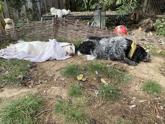 Wir gehen aber regelmäßig zur Physio, sie schläft nachts zugedeckt und bekommt Rotlicht. So hoffen wir, ihr ein wenig Linderung zu verschaffen. Alle Schmerzmittel konnten im Frühjahr 2019 abgesetzt werden, was für ein Erfolg! Seit Herbst 2019, nach einem sehr ausführlichen Check Up, bekommt sie Hormone für ihre Schilddrüse, sie nimmt nun langsam ein wenig ab. Der Gewichtsverlust entlastet ihren angeschlagenen Knochenapparat und sie ist nun wieder viel munterer.