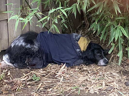 Sie ist schon im Januar 2019 im Freilauf und eine überaus selbstbewußte Hündin, wer genau hinschaut erkennt den kleinen Stahlhelm, den sie trägt. Es ist von Vorteil, wenn andere Hunde sie meiden, wenn sie an der Leine sein muß .... für einen Ridgeback Rüden habe ich das erste mal Tierarztkosten bezahlt .... LIZAR fügte ihm eine kleine Fleischwunde zu, die genäht werden mußte. Seit Dezember 2020 konnte sie nicht mehr zu Gassirunden mit gehen, zu sehr hat ihr die Ellenbogenathrose zugesetzt, sie konnte nach einem Spaziergang nicht mal mehr auf ein Kissen steigen, dass auf dem Boden lag. Sie weinte vor Schmerzen und ich habe beschlossen, dass sie besser Zuhause bleibt aus Angst ich hätte sie einschläfern lassen müssen. So war LIZAR stundenlang im Vorgarten, hat die Sonne genossen und die Paketboten erschreckt.